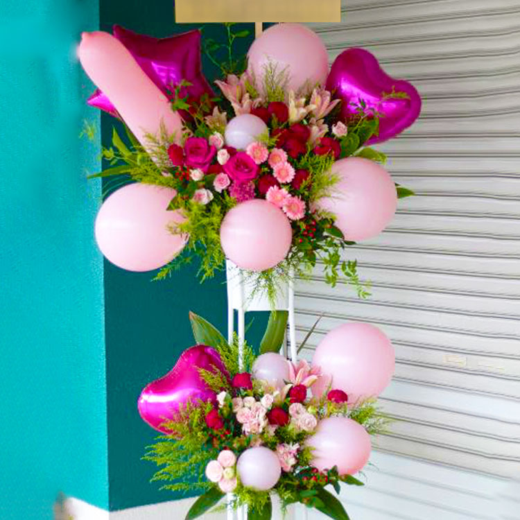 【地域限定】「想いが届く」スリムな形のバルーンスタンド花 2段 22000円
