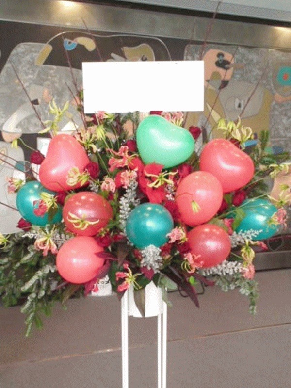 BST1-016 エリア限定商品!東京・神奈川・千葉・埼玉(詳しくはご確認ください) ハートの可愛い!おまかせバルーン スタンド花...