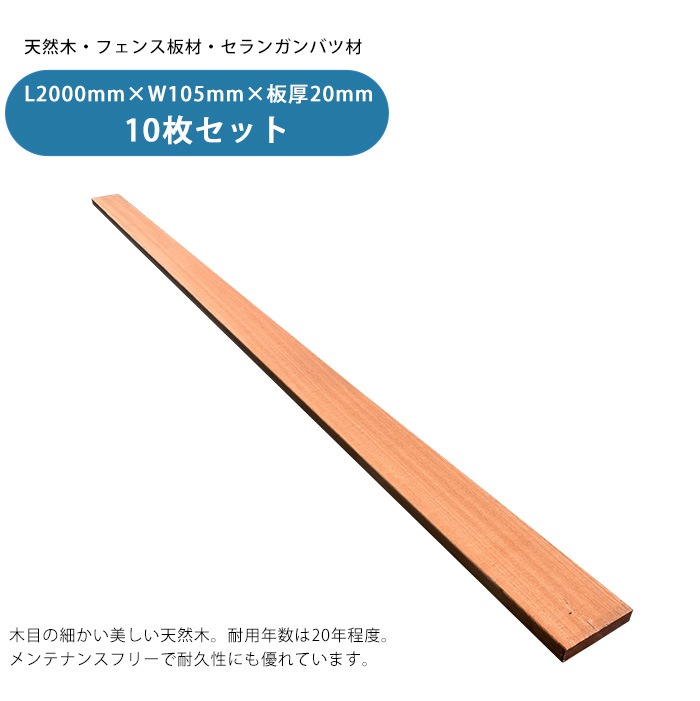 【天然木目隠しフェンス】セランガンバツフェンス板材(10枚セット) L2000mm×W105mm×板厚20mm【バンキライ ハード...