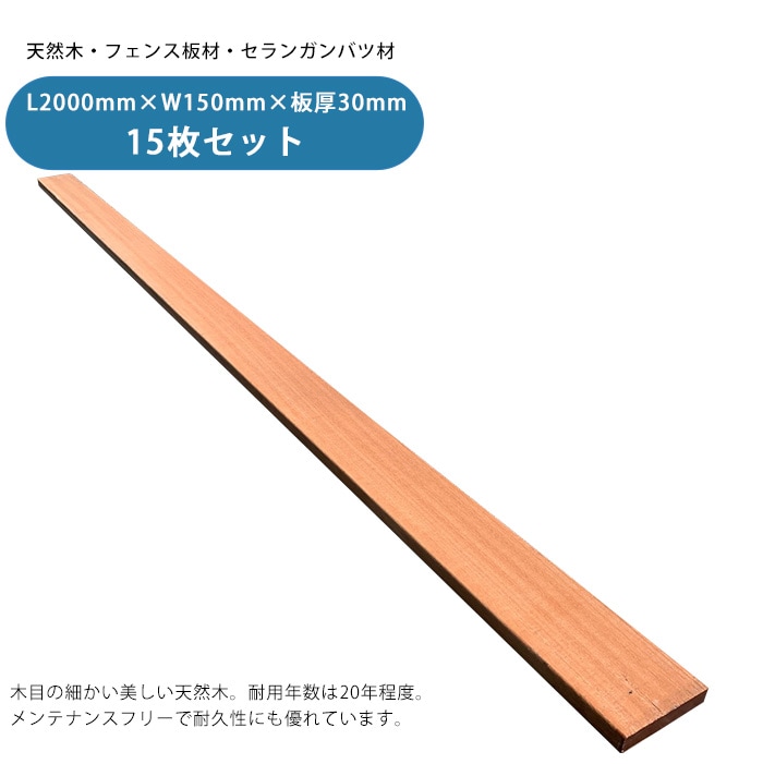 【天然木目隠しフェンス】セランガンバツフェンス板材(15枚セット) L2000mm×W150mm×板厚30mm【バンキライ ハード...