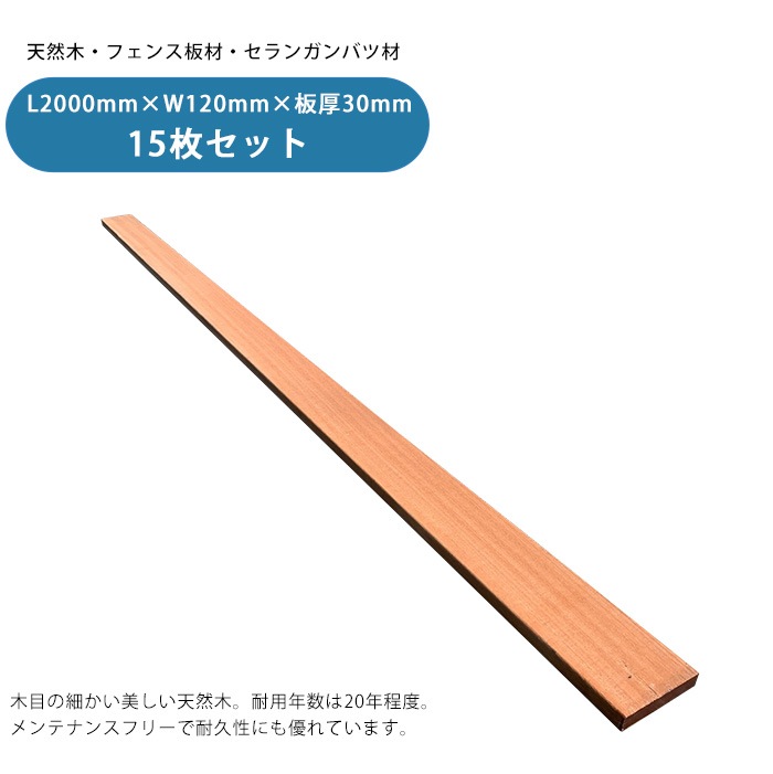 【天然木目隠しフェンス】セランガンバツフェンス板材(15枚セット) L2000mm×W120mm×板厚30mm【バンキライ ハード...