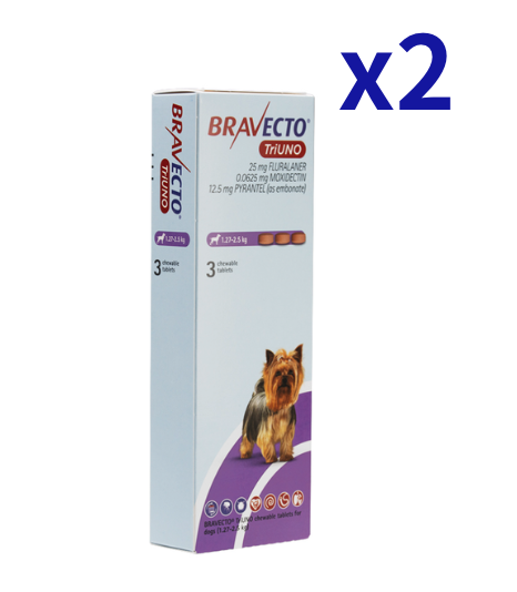 ブラベクトトリウノ 1.27-2.5kg | 3錠x2箱 | ノミ | マダニ | フィラリア