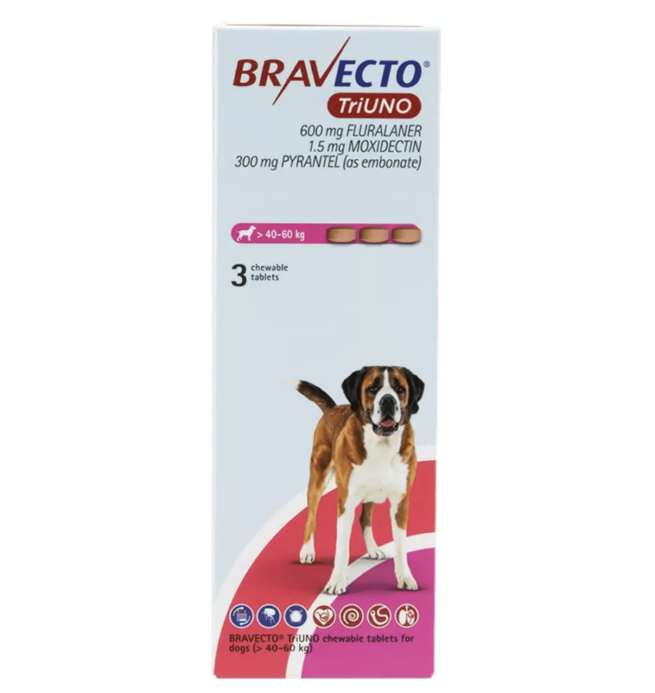 ブラベクトトリウノ >40-60kg | 3錠x1箱 | ノミ | マダニ | フィラリア