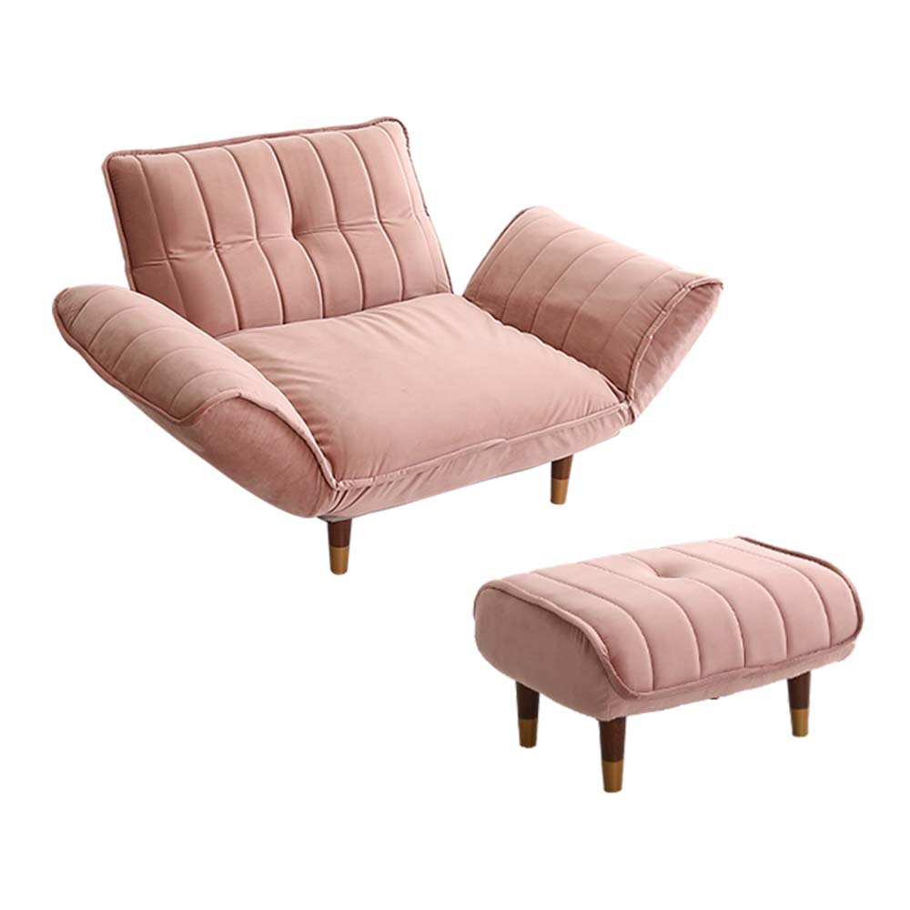 大人かわいいインテリア ベロアカウチソファ 1人掛け+オットマンセット【Chammy -チャミー-】SH-07-OKBA1P-S-...