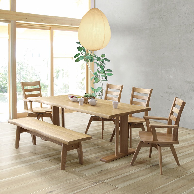 ダイニング6点セット 頂 テーブル T330(180)N 2本脚 + チェア C330N + アームチェア C330N + ベンチ...