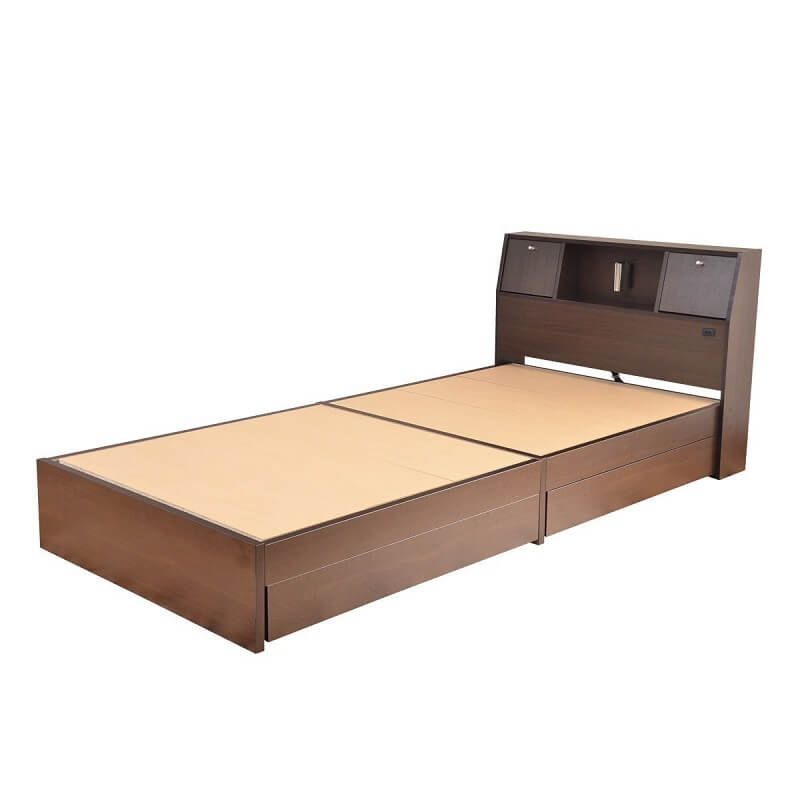 Cave 寄木柄引出し付ベッド シングル 128009_DB_F ダークブラウン【フレームのみ】