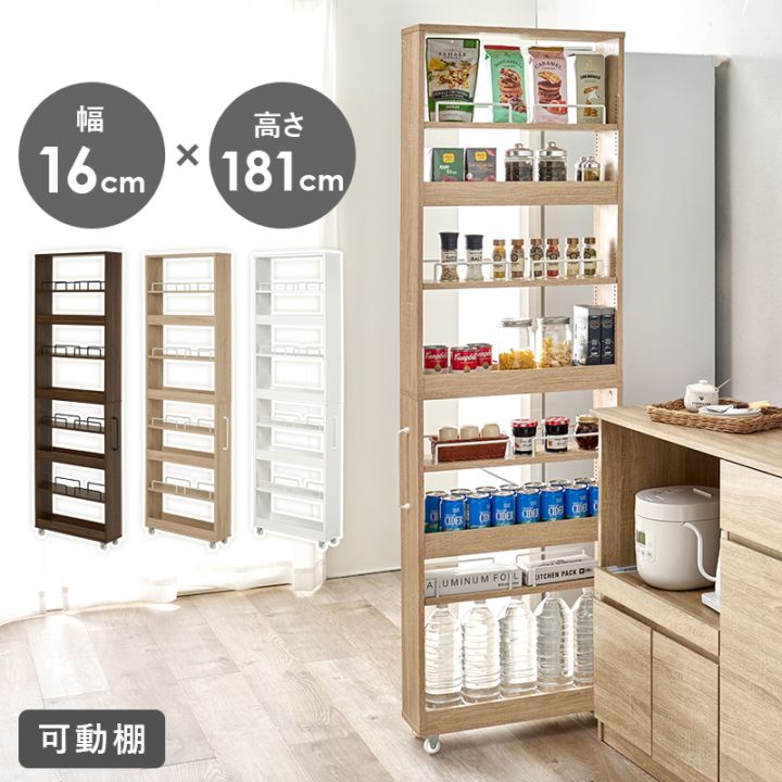 隙間収納 16cm キッチンワゴン キャスター付き オープンラック ワゴンラック ハイタイプ
