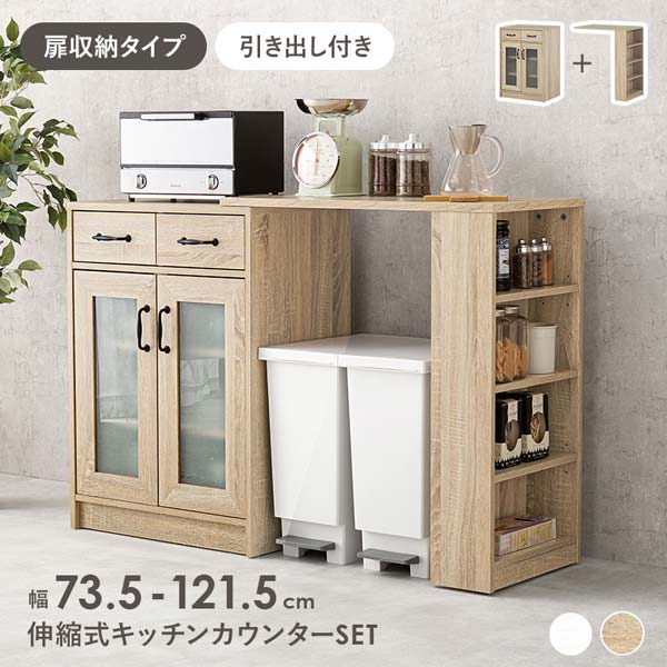 伸縮 キッチンカウンター 食器棚 収納 下 カウンターテーブル 幅75~125cm (収納庫タイプ)