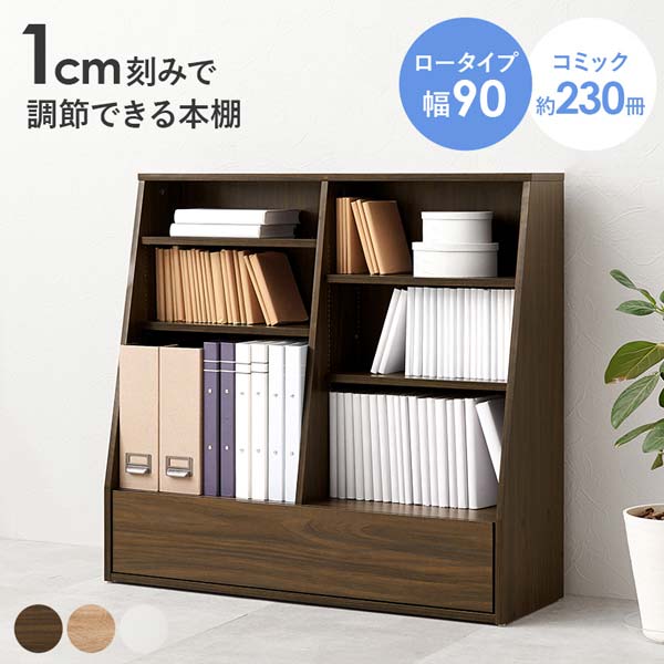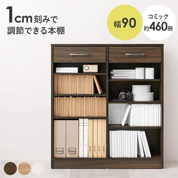 本棚 大容量 薄型 おしゃれ 引出し ブックラック 幅90cm