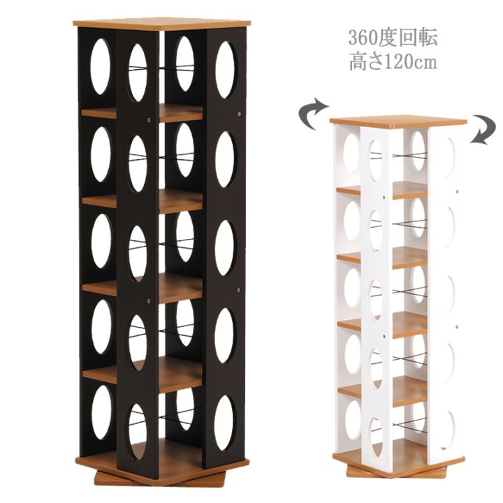 本棚 回転式 大容量 角型 5段 省スペース 収納 完成品 無塗装