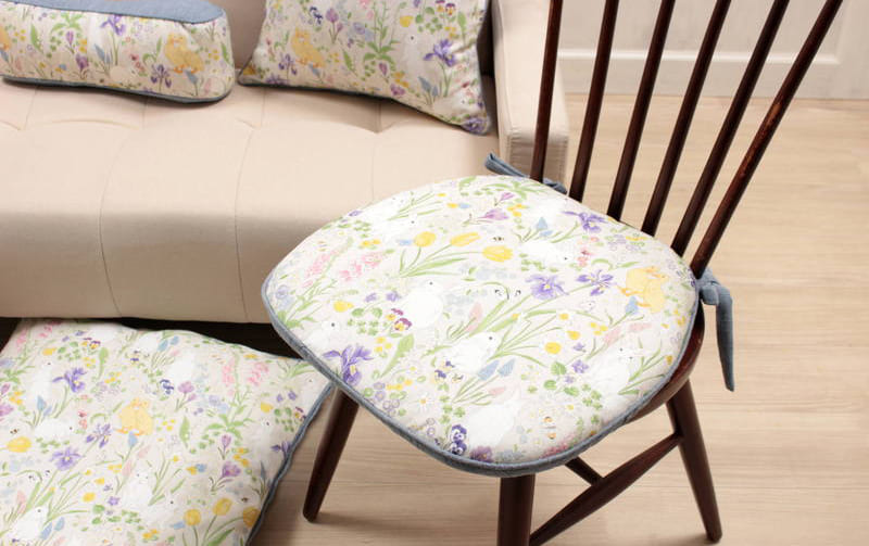 ボタニカルプリント 紐付シートクッション 約43×45cm [Lapin Botanique]