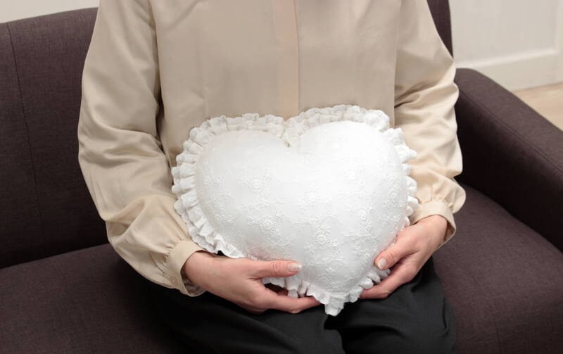 アイレット刺繍 ハートクッション 約32×28cm [paquerette]