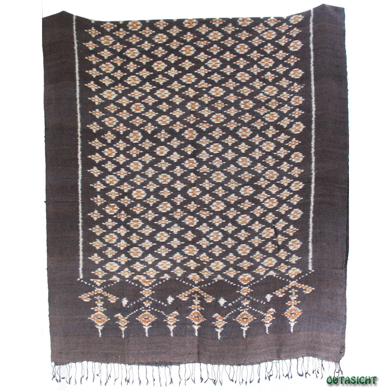 コットン(木綿)反物生地 手紡ぎ 手織 黒茶白色経緯絣(たてよこがすり) タイ TMR-37