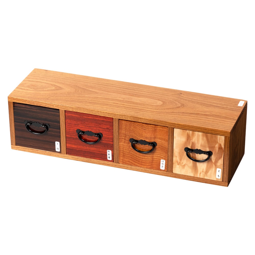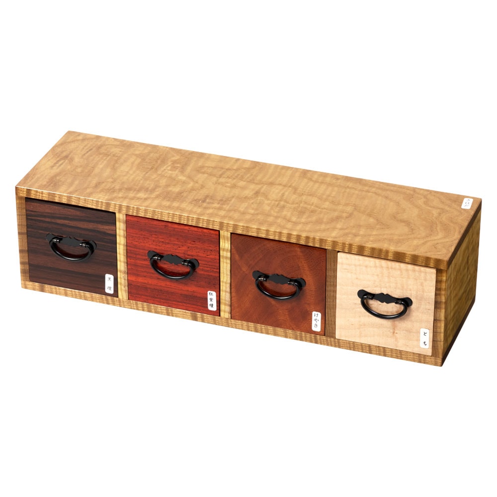 銘木使用 4列小物入れ002 槐(えんじゅ) 4種の木目が楽しめます 縦置き横置き可能 京都・美山 銘木工芸 山匠 Four co...