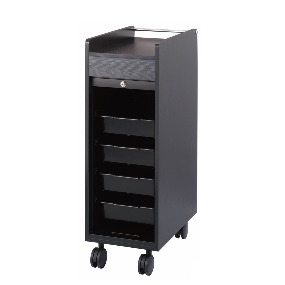 【西村製作所】木製ワゴン ワームスシリーズ ワームスシャッター付きワゴンC-345〈黒木目〉