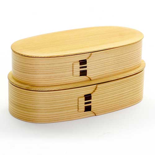 大館曲げわっぱ 丸二段弁当 (k-130) 秋田県の伝統工芸品 作者:伝統工芸士・栗盛俊二 Odate Magewappa Be...
