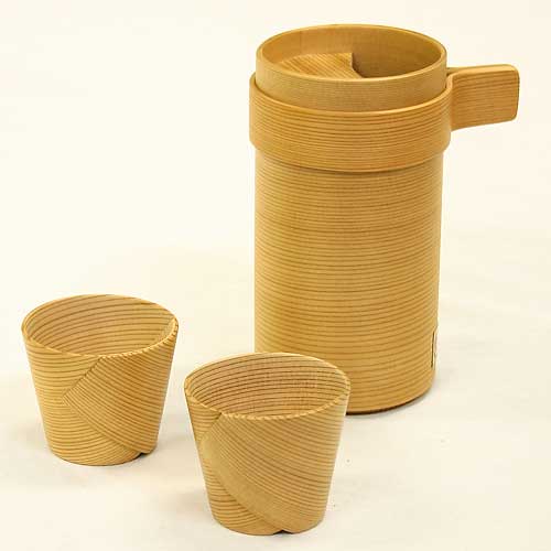 大館曲げわっぱ 徳久利ぐいのみセット 作者:伝統工芸士・栗盛俊二 Odate Magewappa Tokkuri & Guinom...