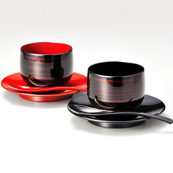 山崎漆器商会:越前塗「彩波椀・皿ペア スプーンセット 白檀」午後のティータイムに