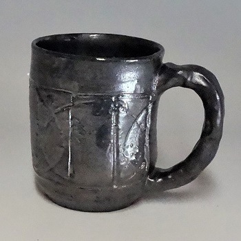 淡竹窯「和美黒(わびくろ) 線刻つながり紋 ジョッキ(黒地)」