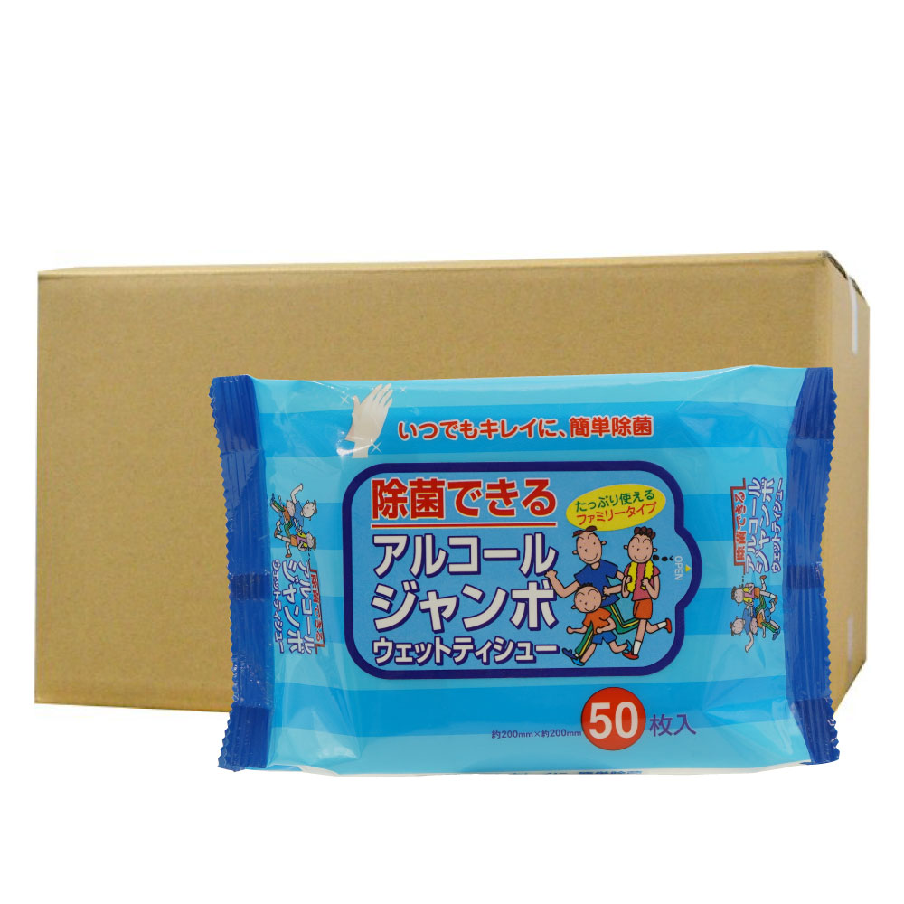 除菌 アルコール ジャンボ ウェットティシュー 50枚入×25個セット 日本製 同梱不可品