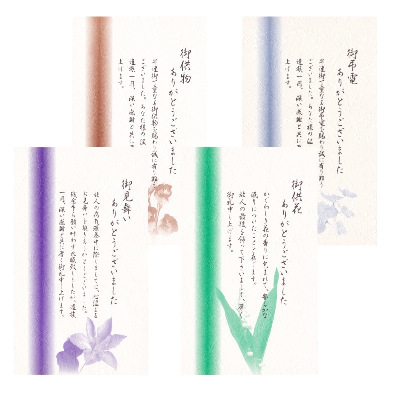 お礼カード 10枚 供花 弔電 供物 見舞い 4種より選択 葬儀後 忌明け 満中陰 お返し