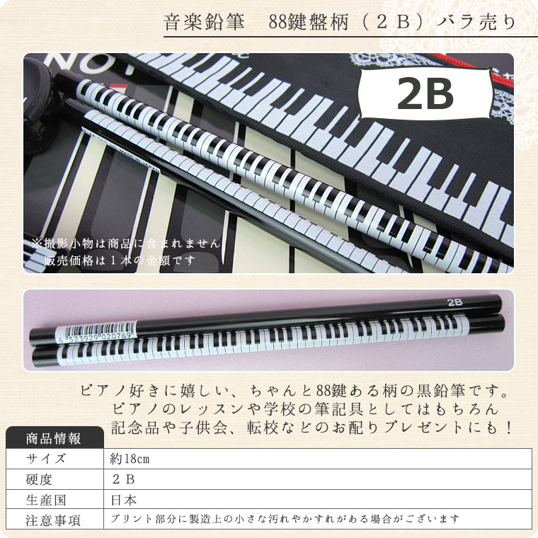音楽鉛筆 88鍵盤柄(2B)バラ売り【えんぴつ・ペンシル】