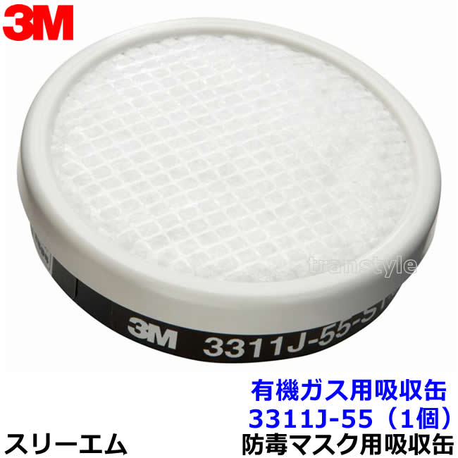 3M 有機ガス用吸収缶フィルター付 3311J-55-S1 (1個) (3000/HF-50/1200シリーズ用) 防毒マスク用 ...