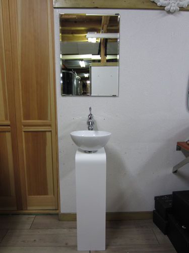 【Bセット12】混合水栓&洗面ボウル&化粧台(多少塗装ムラ・凹み・キズあり)の3点セットさらに!!アウトレット鏡&トラップサービス