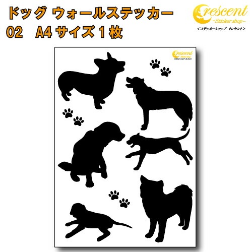 いぬ ウォールステッカー 02【犬 ドッグ dog モノクロ】【白縁取り有】