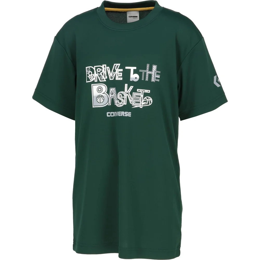 コンバース Tシャツ 半袖 ジュニア バスケットボール プリントTシャツ 吸汗速乾 D.グリーン CB451356-4700