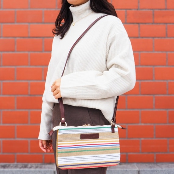 ショルダーバッグ/生成り/三河織物 帆前掛け生地
