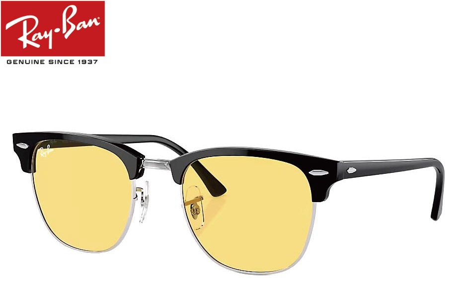 RAY-BAN CLUBMASTER WASHED LENSES RB3016 1354R6 51mm シルバー上にブラック/イエ...