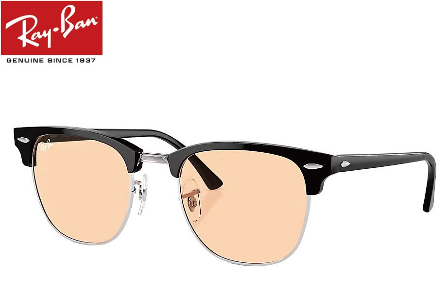 RAY-BAN CLUBMASTER WASHED LENSES RB3016 13544B 51mm シルバー上にブラック/ピン...