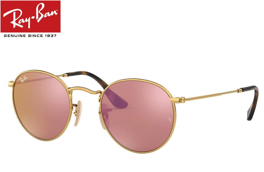 レイバン ROUND METAL FLAT LENSES ゴールド/クリスタルライトブラウンピンクミラー RB3447N 001/...