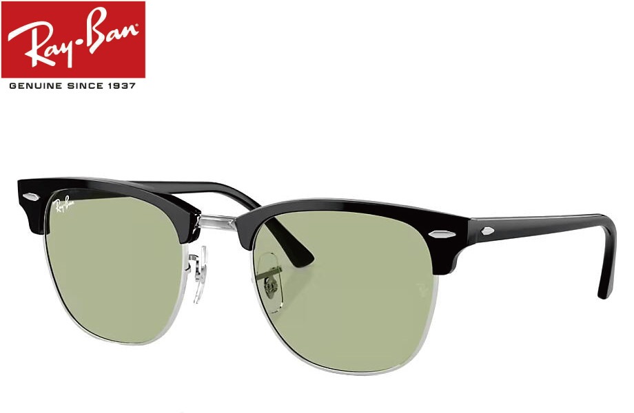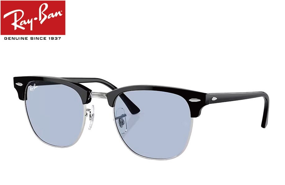 RAY-BAN CLUBMASTER WASHED LENSES RB3016 1354R5 51mm シルバー上にブラック/ライ...