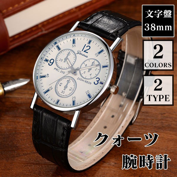 腕時計 アナログ クォーツ ウォッチ ビジネス シンプル 紳士 メンズ 型押し ベルト ステンレス スチール素材