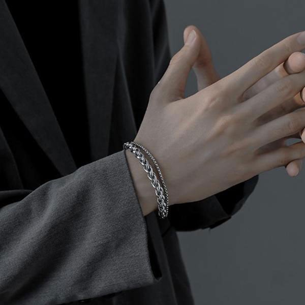メンズ ブレスレット 2連チェーン 腕輪 アクセサリー ジュエリー シルバー シンプル 普段使い フォーマル お洒落 プレゼント