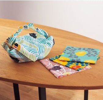日本製ふろしき ねこととり 綿100% こはれ グリーン ピンク
