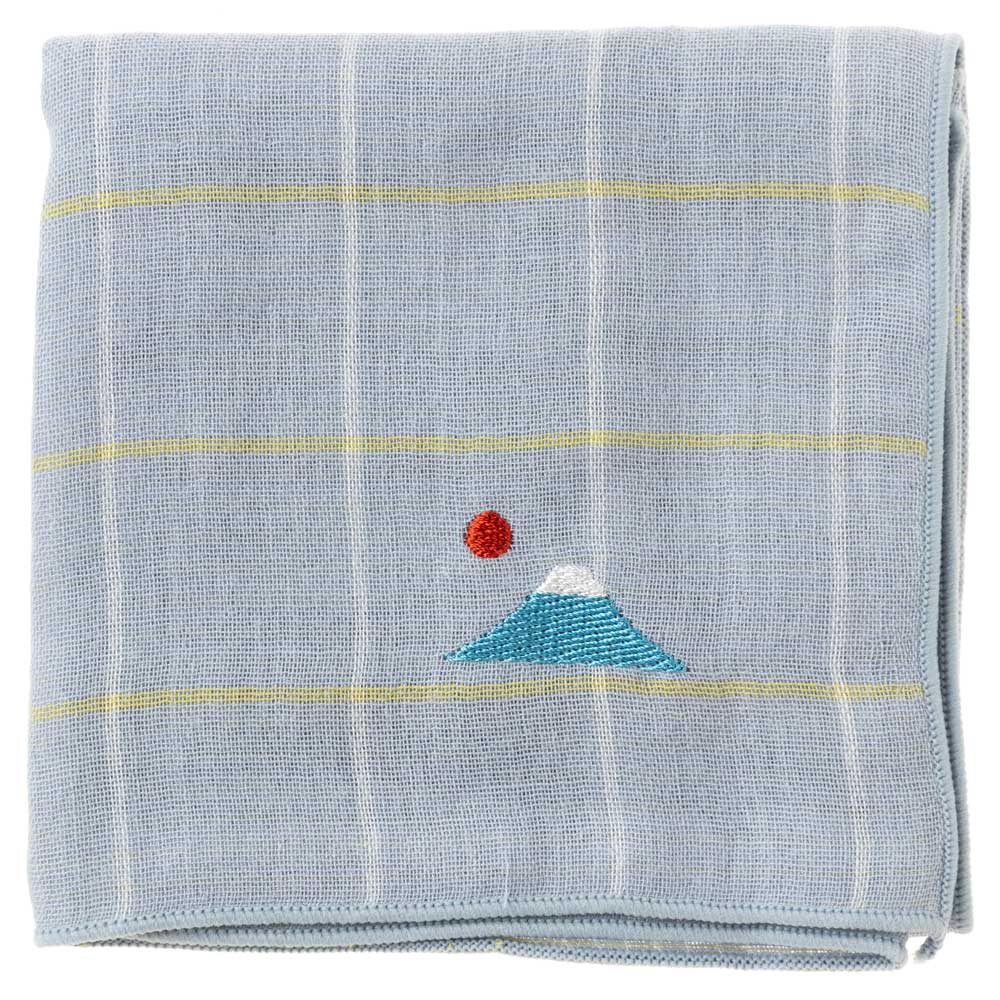 スーベニール 富士山ハンカチ 富士山(グリッド) 刺繍入りガーゼハンカチ Japanese pattern embroidered...