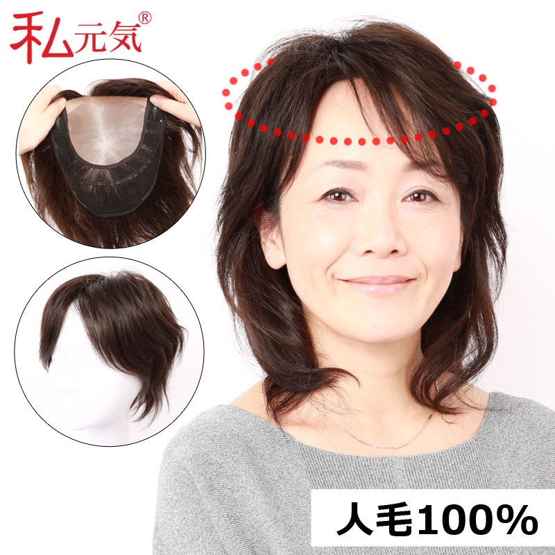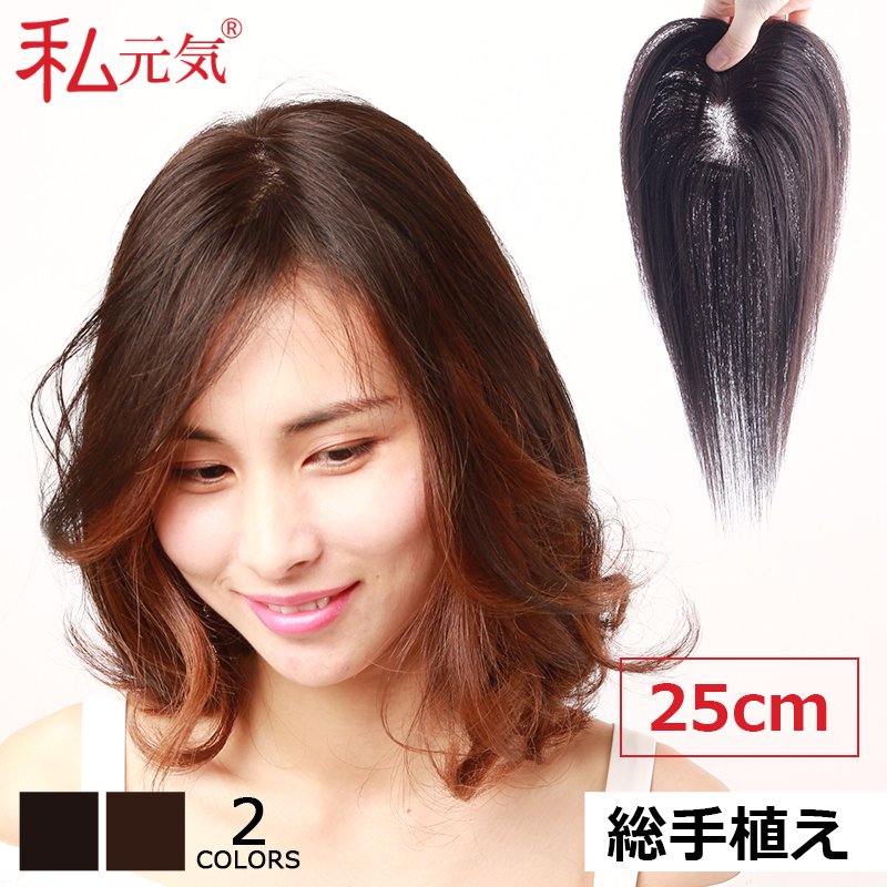 総手植え 通気性 人毛 【25cm】 部分かつら ポイントウィッグ 私元気 BHA710ZL