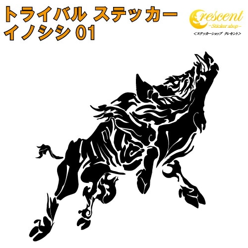 イノシシ ステッカー 01【5サイズ 全26色】【いのしし 猪 亥 干支 猪突猛進 トライバル タトゥー ちょいワル 傷隠し ヤン...