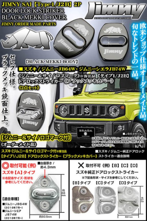 [タイプ1/J2]JB64W/74Wジムニー【ジムニー&サイ/ロゴマーク付/客注品】2点セット/ドアロック ストライカーカバー[シ...
