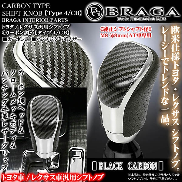 ハリアー/ハイエース/エスティマ【カーボン調/シフトノブ】[タイプ4/CB]パンチング牛革&クロームメッキ/欧米仕様/ブラガ