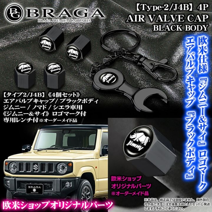 [タイプ2/J4B]JC74W ジムニー/ノマド[ジムニー&サイ/客注品]エアバルブ キャップ/ブラック/4個入/専用レンチ付/欧...