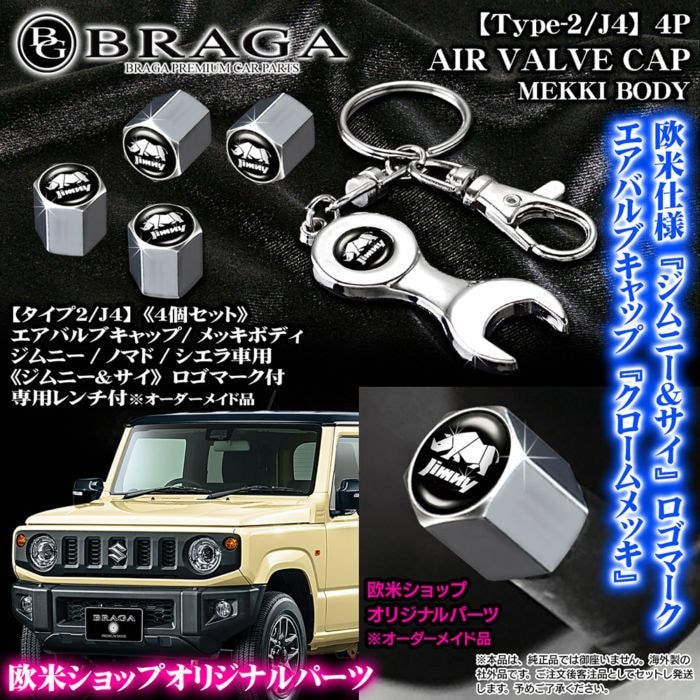 [タイプ2/J4]JC74W ジムニー/ノマド[ジムニー&サイ/客注品]エアバルブ キャップ/メッキ/4個入/専用レンチ付/欧米仕...