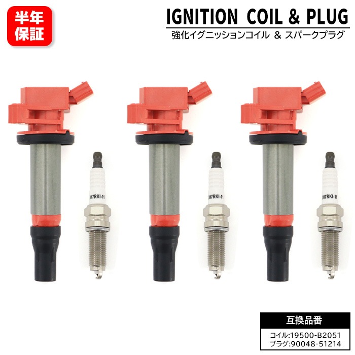 イリジウム スパークプラグ & 強化イグニッションコイル 3セット 90048-51214 19500-B2051 互換品 6ヵ月...