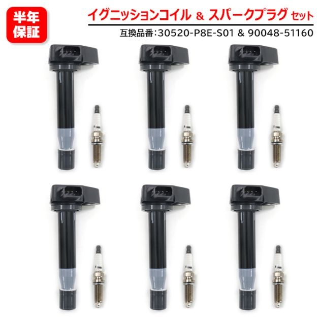 イリジウム スパークプラグ & イグニッションコイル 6セット 30520-P8E-S01 90048-51160 互換品 6ヵ月...