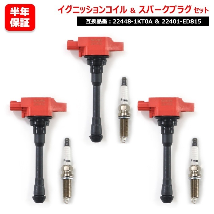 イリジウム スパークプラグ & 強化イグニッションコイル 3セット プラグ 22401-ED815 コイル 22448-1KT0A...