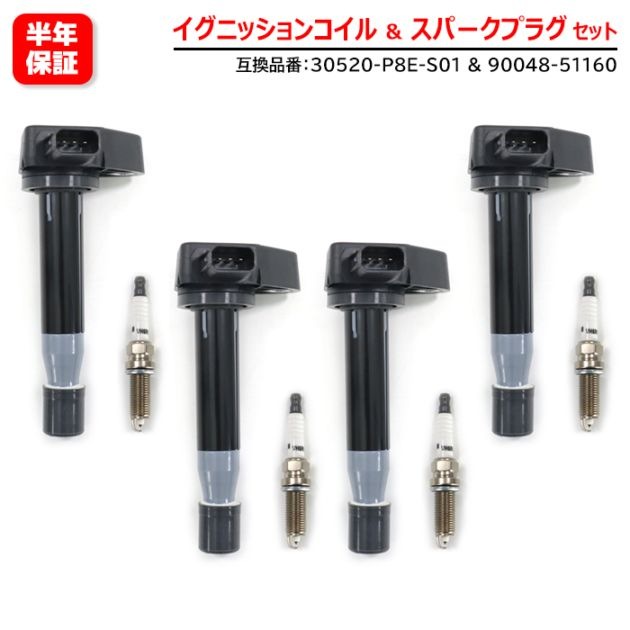 イリジウム スパークプラグ & イグニッションコイル 4セット 30520-P8E-S01 90048-51160 互換品 6ヵ月...