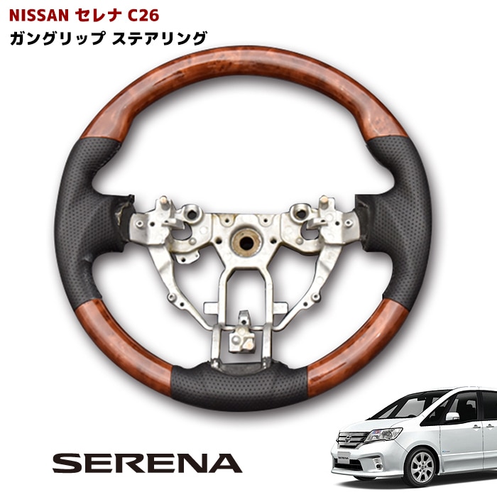 日産 セレナ C26 ガングリップ パンチング PVCレザー ステアリング 茶木目 コンビ ハンドル